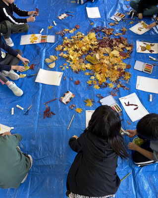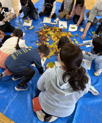 10/22(水)落ち葉アートを開催し、砂川小学校1年生の児童が参加しました。